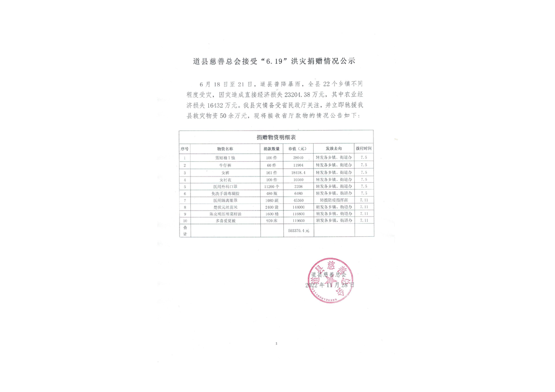 道县慈善总会接受“6.19”洪灾捐赠情况公示