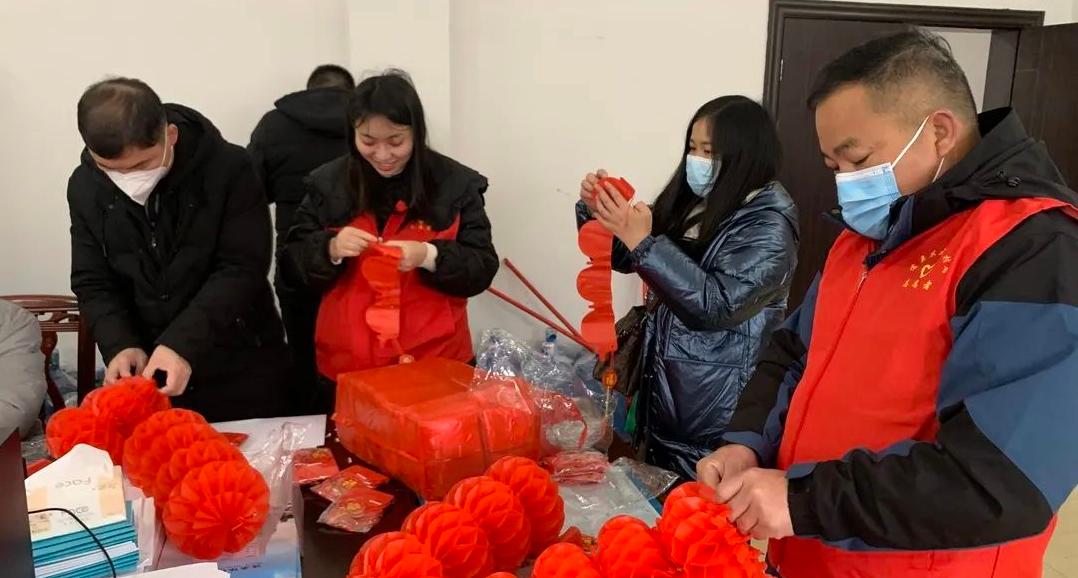 在农业农村局小区,大家分工合作、互相配合,拆包装、撑灯笼、挂灯笼,用300多串灯笼,为小区“补新妆”增色添彩“增颜值”,一串串带着祝福的火红灯笼在树枝头随风摇曳,映照出节日的喜庆,洋溢着浓浓的“年味”。