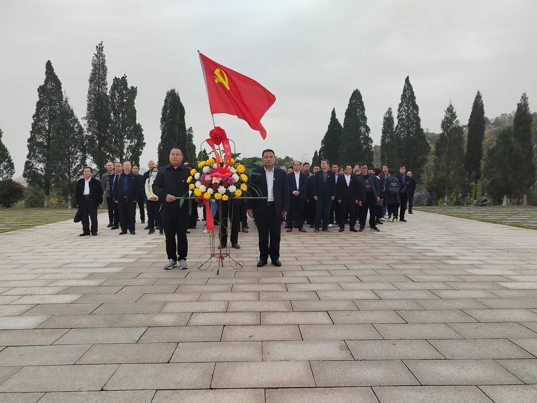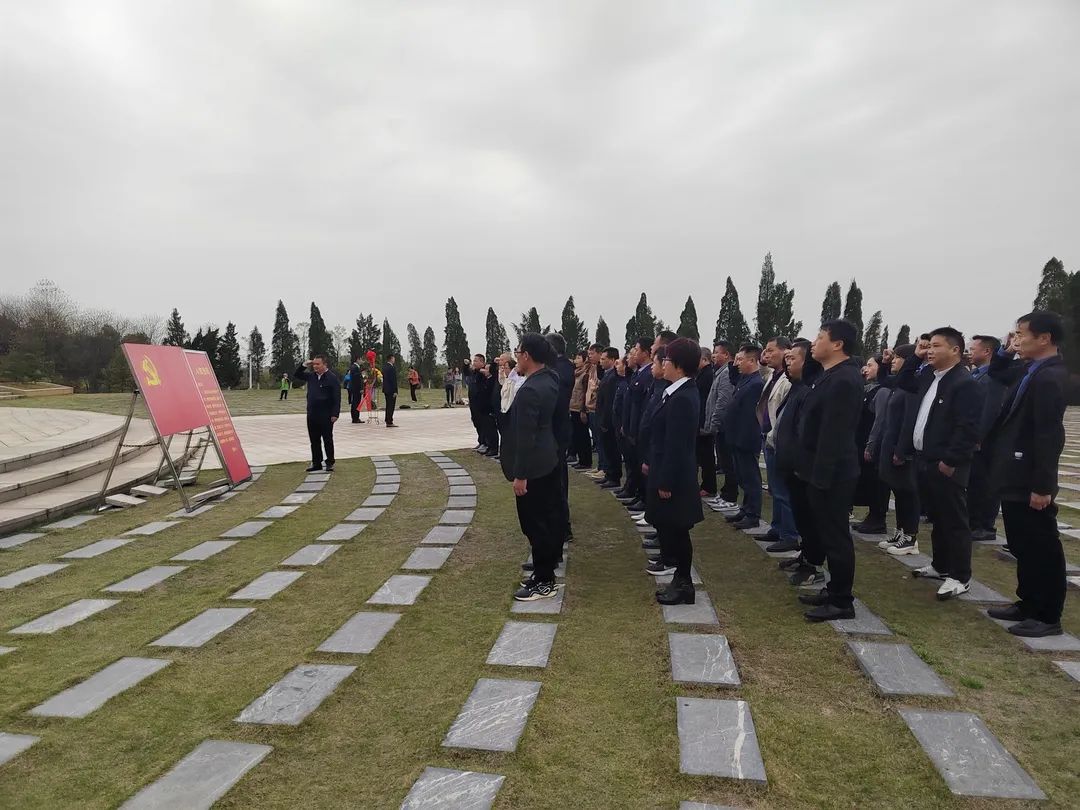 首先,大家来到湘江战役纪念园凭吊广场,举行了庄严肃穆的缅怀悼念仪式。全体党员干部怀着无比崇敬的心情,缅怀革命烈士,向革命烈士默哀并敬献花篮,然后,面对鲜红党旗,全体党员干部重温入党誓词,再忆入党初心。