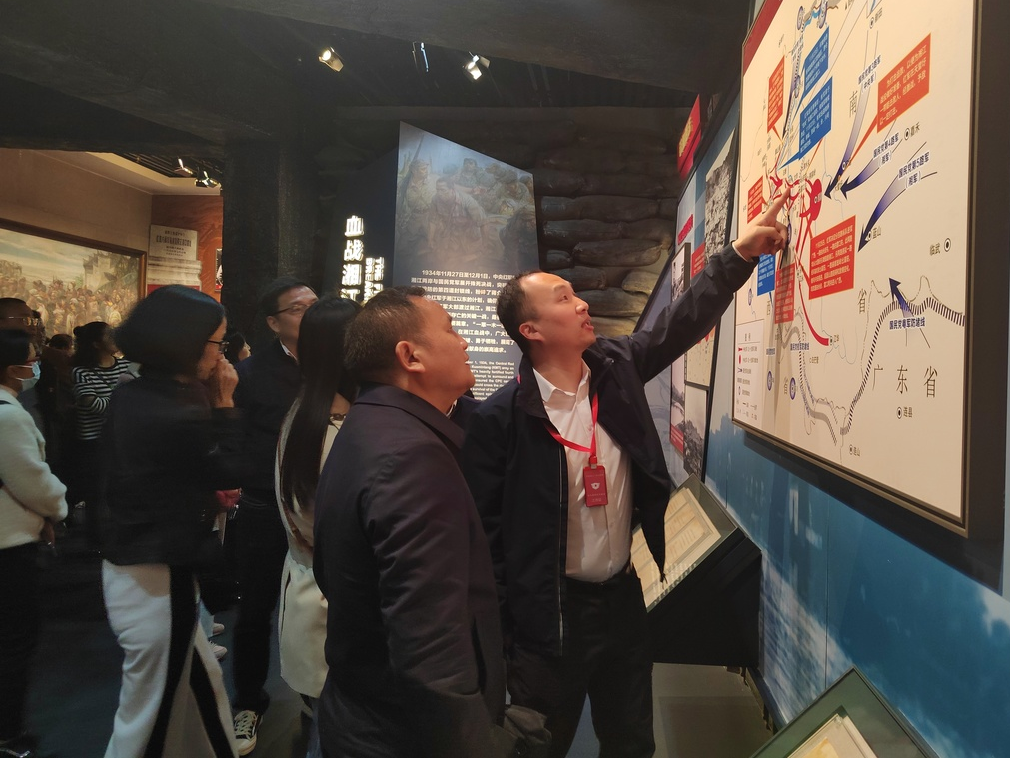 随后,集体走进湘江战役纪念馆认真聆听讲解员的现场讲解,仔细观看红军长征和湘江战役的革命文物、照片、油画、雕塑等文献资料,深切感受当年红军将士血战湘江的大无畏牺牲精神,感悟红军长征伟大胜利的重要意义,感叹祖国今日繁荣富强的来之不易,对革命先烈们勇往直前、绝对忠诚的精神所深深感动。