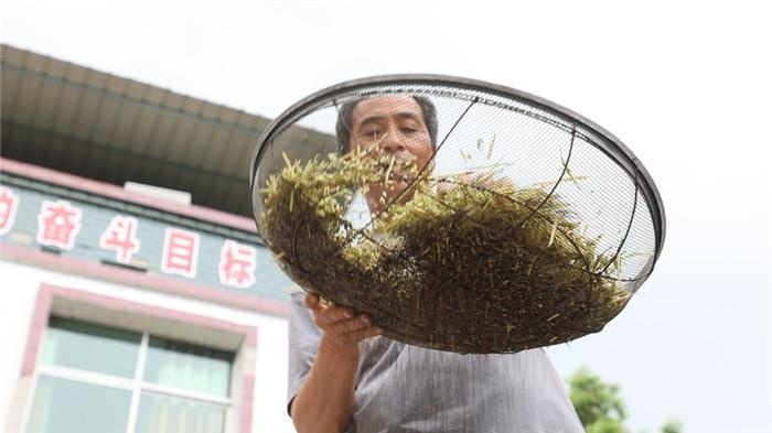 “今年油菜可以,杆子那么粗都压弯了。我种了8亩多,打了2000多斤(菜籽),大概每亩田有260-270斤。”蚣坝镇光家岭村村民周勇开心地说道。