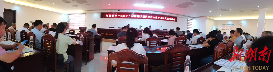 日前,道县耕地“非粮化”和抛荒问题整治工作推进会在道县农业农村局召开。县农业农村局班子成员、各乡镇(街道)分管领导、农业综合服务中心负责人、业务骨干、耕地“非粮化”和抛荒问题整治工作督导组10个组组长及成员,共计120余人参加会议。