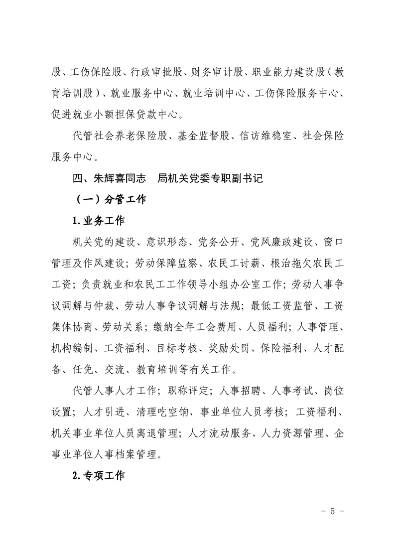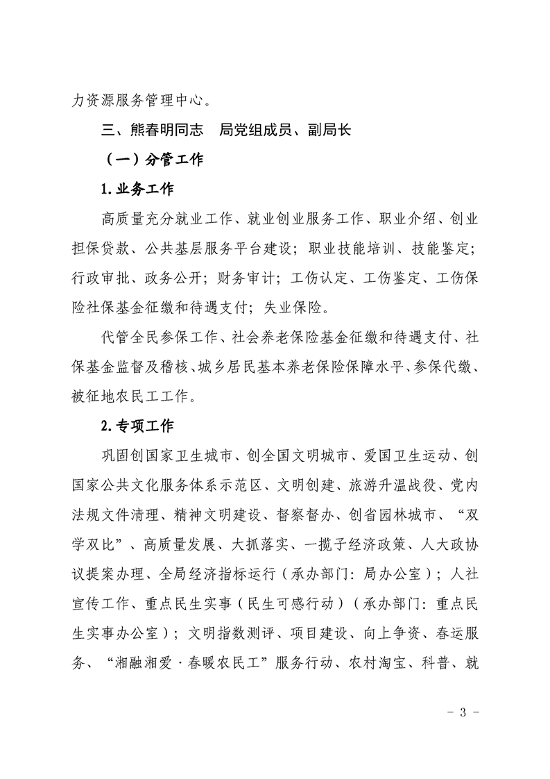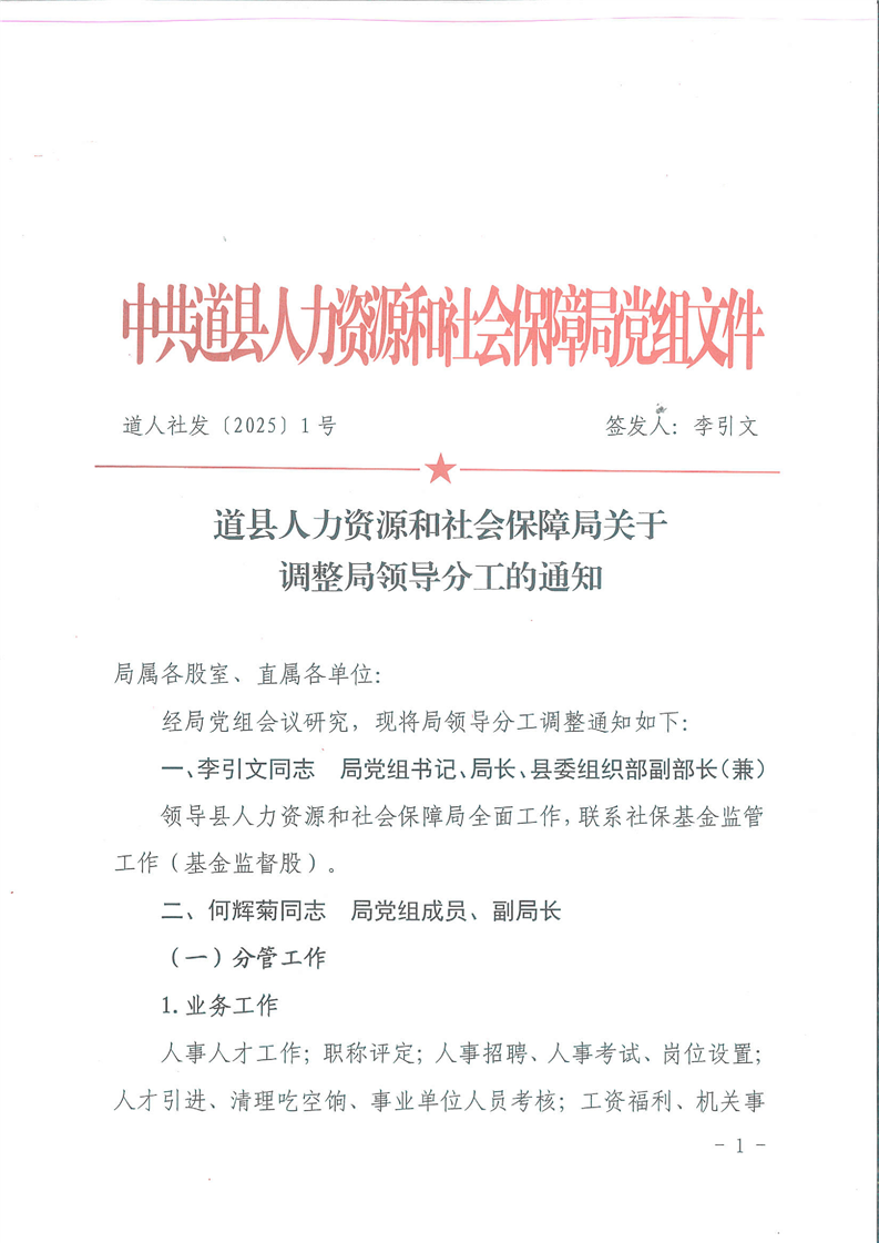 道县人力资源和社会保障局关于调整局领导分工的通知
