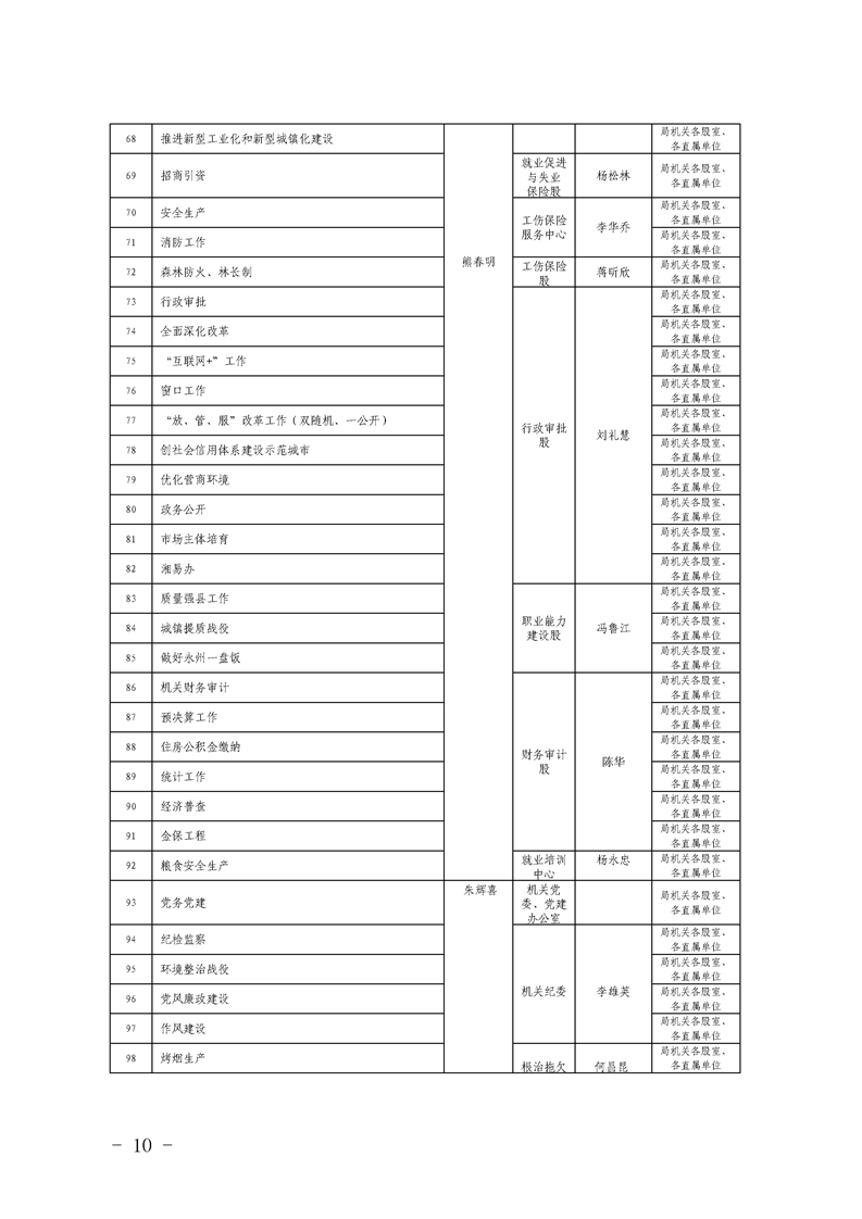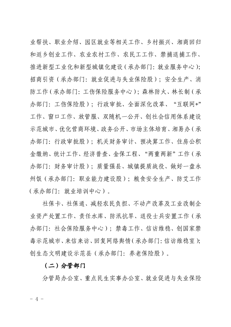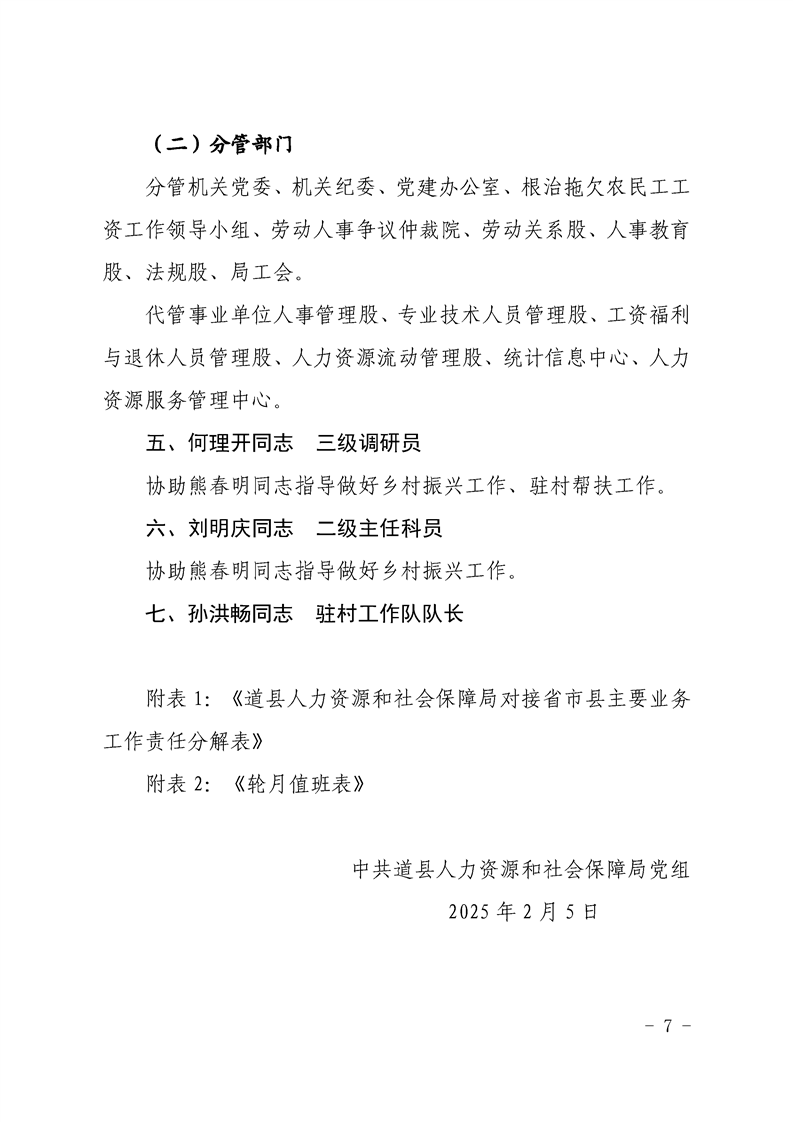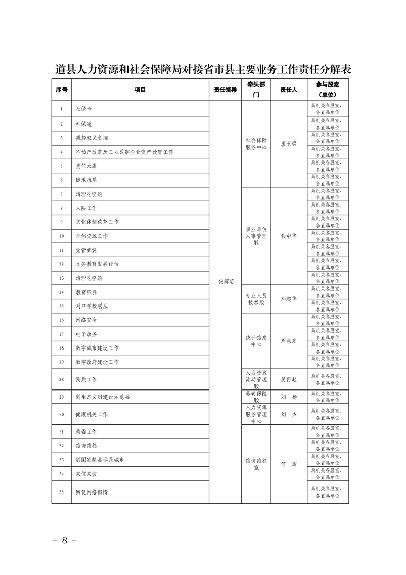 道县人力资源和社会保障局关于调整局领导分工的通知