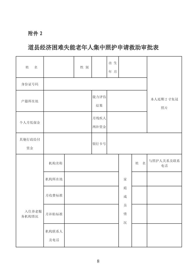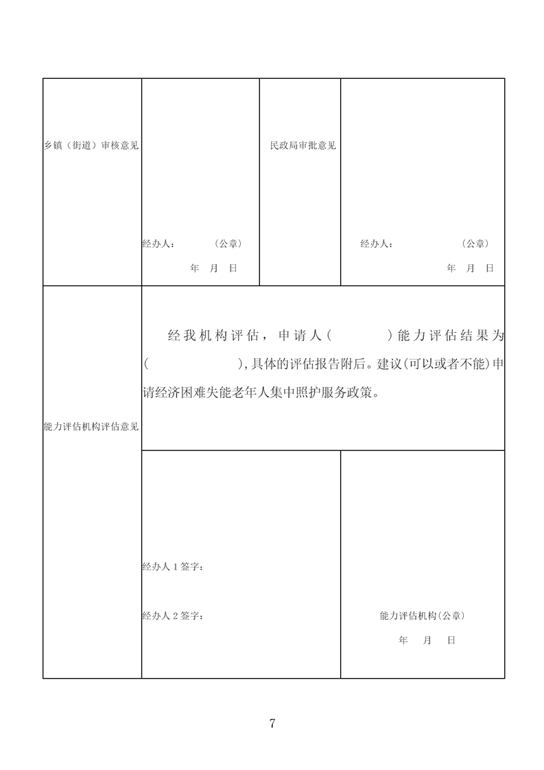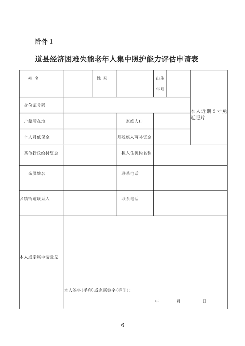 道县经济困难失能老年人集中照护服务审批表(1)