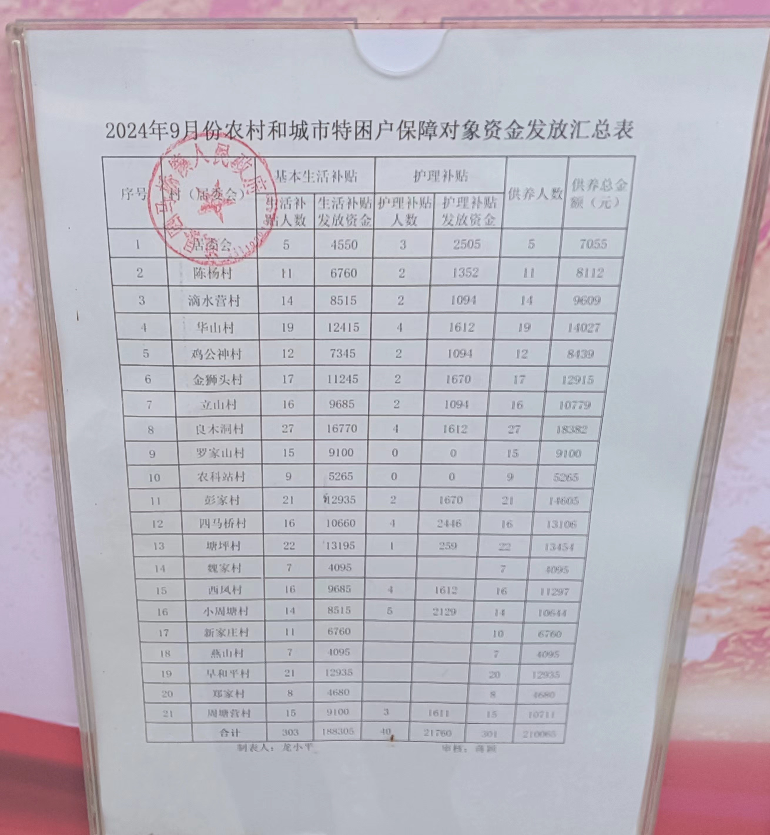 2024年9月份农村和城市特困保障对象资金发放汇总表