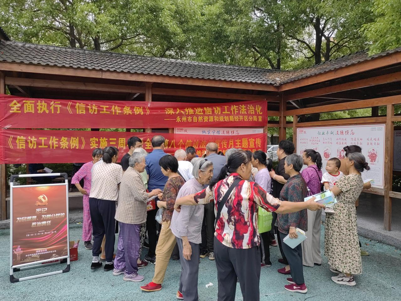 今年是《信访工作条例》颁布实施三周年,也是信访工作法治化深入推进之年。为深入学习贯彻习近平法治思想、习近平总书记关于加强和改进人民信访工作的重要思想,推动依法信访理念深入人心,推动信访工作法治化走深走实,5月20日,市自然资源和规划局经开区分局组织干部职工在永州经开区长丰社区开展“全面执行《信访工作条例》·深入推进信访工作法治化”集中宣传活动。