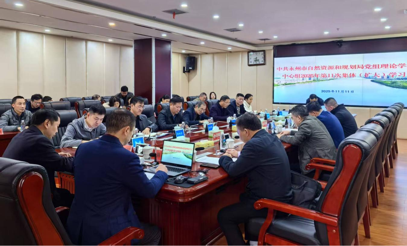 11月11日上午,永州市自然资源和规划局党组书记、局长龙军主持召开局党组理论学习中心组2025年第11次集体(扩大)学习。全体在家局领导,各科室、直属单位负责人参加。