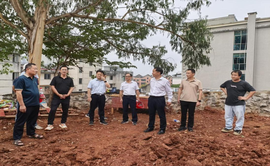 在潇湘公园滑坡隐患点地质灾害治理工程施工现场,调研组与施工单位、监理单位负责人交流,详细了解施工情况,要求施工单位清醒认识到工程实施的重要性,充分考虑排水、卸荷等问题,认真对照施工设计,严格把控工程质量,把项目工程建设成安全工程、优质工程、廉洁工程、群众满意工程。