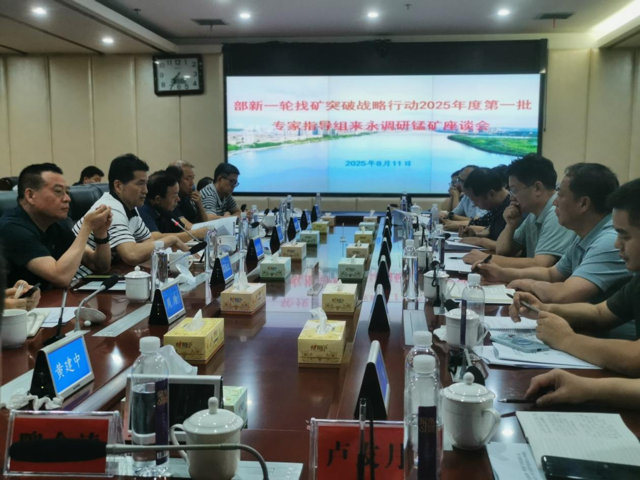 调研组一行深入永州市零陵区水埠头矿区天晏岭矿段锰矿勘查项目现场调研,并在永州市自然资源和规划局召开座谈会,认真了解永州市锰矿勘查项目工作进展情况,就地质找矿工作中存在的困难问题和技术方法瓶颈,开展交流指导,探索破解方法路径。
