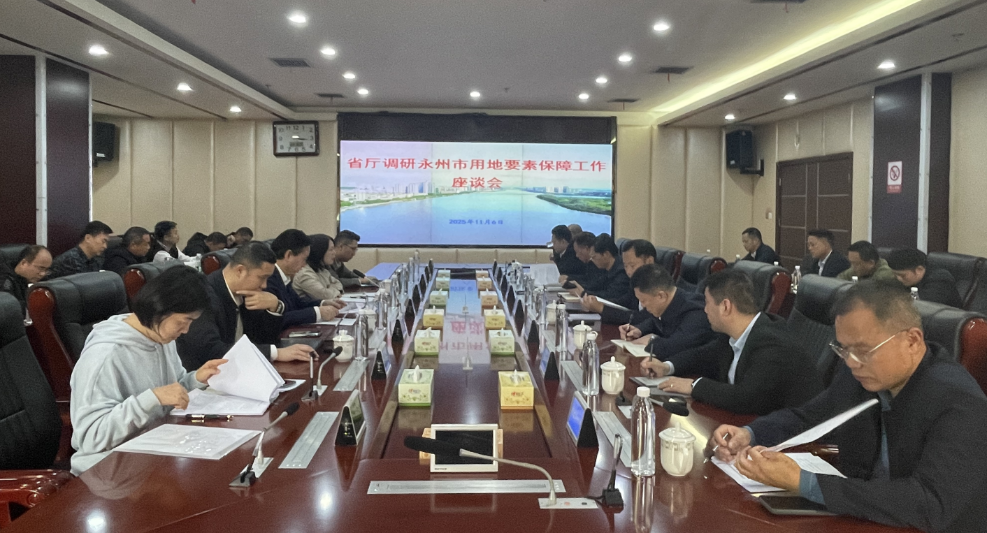 11月6日,省自然资源厅党组成员、副厅长林目轩带队来永调研用地要素保障工作,并在永州市自然资源和规划局召开座谈会。厅政务服务处处长袁莹、副处长李俊,局党组书记、局长龙军,局党组成员、市不动产登记中心主任温小新,市林业局、市城发集团、市经发集团、市港发集团,以及局相关科室、直属单位、各县市区局有关负责同志参加会议。
