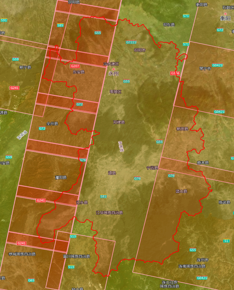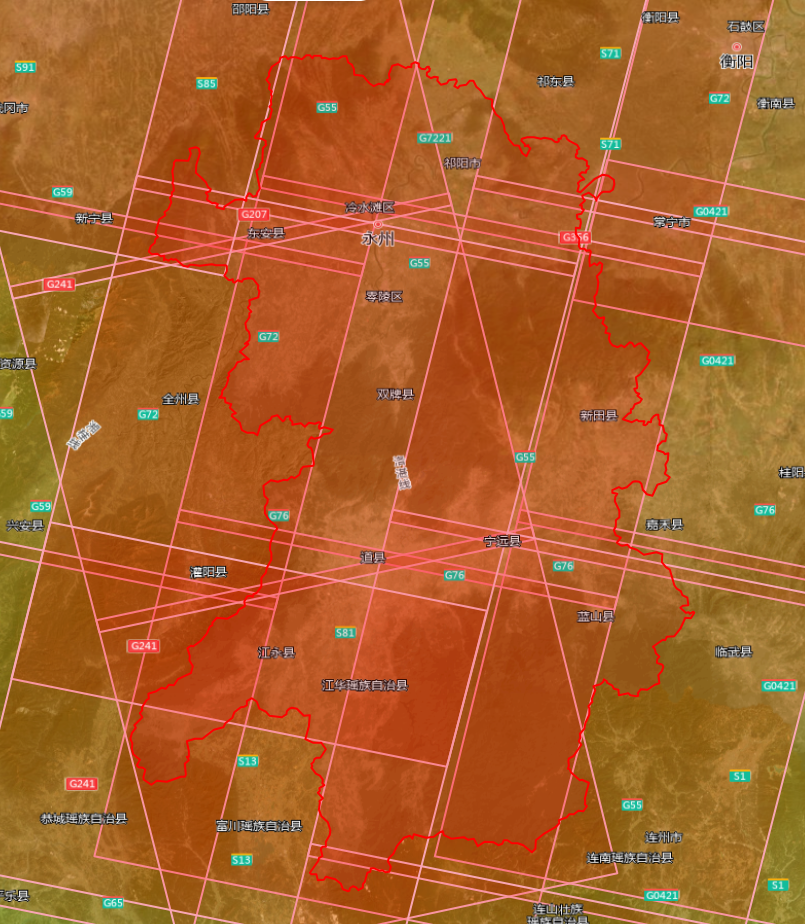 高光谱影像12景,覆盖祁阳市、东安县、冷水滩区、零陵区、双牌县等局部区域: