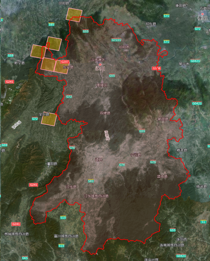 其中,0.5m分辨率光学影像共6景,覆盖东安县等局部区域: