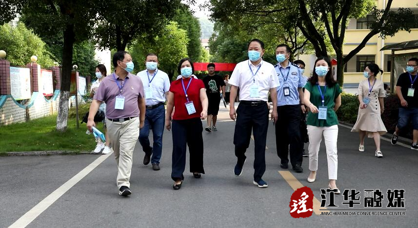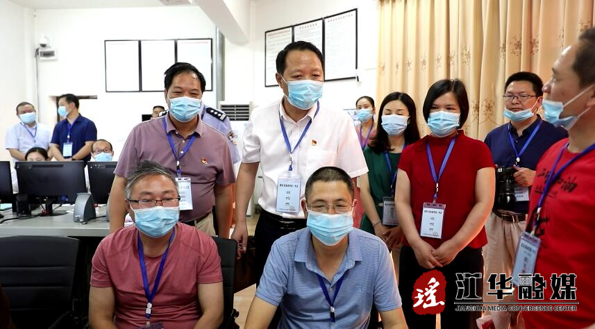 段贵建、龙飞凤先后来到江华二中、江华一中考点,认真了解考点疫情防控、监控指挥、试卷保密、交通、安保、医疗、供电等保障工作情况,详细查看考生体温检测通道管理、隔离与备用考场设置、考场秩序等考务工作情况,还通过监控系统查看了考点的部分考场实时场景。