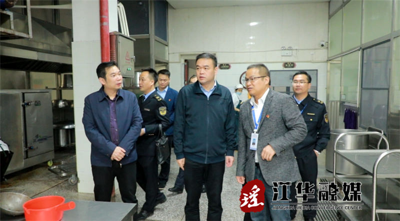 3月21日,江华县委副书记、县长吴军臣带队到水口镇中心小学督导食品安全工作。