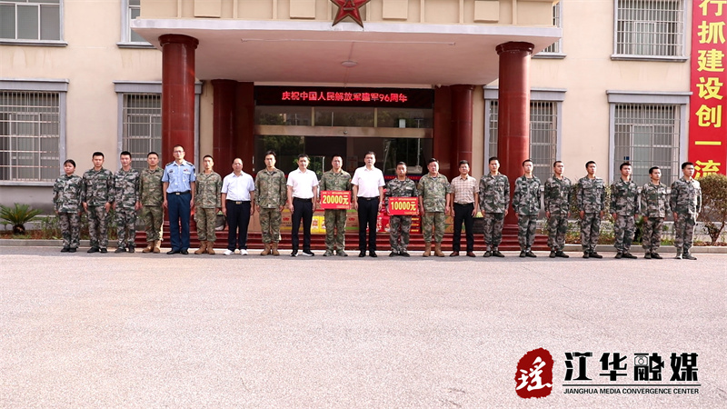8月1日,受江华县委书记段贵建委托,江华县委副书记、县长吴军臣与文嵩、叶心太、唐孝任、唐晖等县四大家领导一道走访慰问驻江华军事单位,为他们送上节日的祝福和慰问金。