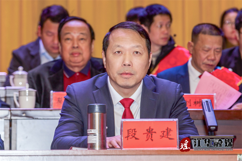段贵建指出,这一年,我们在习近平新时代中国特色社会主义思想的指导下,锚定“三高四新”美好蓝图,坚持向南向海向外,大力发扬“三盯”精神,始终保持“三干”作风,深入实施江华县委“125”战略,各项工作稳中求进、难中求成、变中求好,多项工作典型经验做法获得省政府真抓实干督查激励表彰,“五五”工作法、“一主一特”产业发展、乡村振兴、县域经济高质量发展成效等获得省委书记沈晓明、省长毛伟明、省政协主席毛万春等领导高度肯定,呈现出发展势头好、干事劲头足、群众心头暖、“风景这边更好”的喜人局面。主要体现在高质量发展的“引擎动力”更加强劲,高质量发展的“科技特质”更加彰显,高质量发展的“绿色含量”更加丰盈,高质量发展的“民生温度”更加暖心,高质量发展的“政治根基”更加坚实。过去的一年,我们一仗接着一仗打,一关接着一关闯,经受住了严峻严苛的考验,取得了可圈可点的成绩。一个个“江华速度”“江华现象”“江华奇迹”的背后,是全县广大干部群众的“江华担当”。