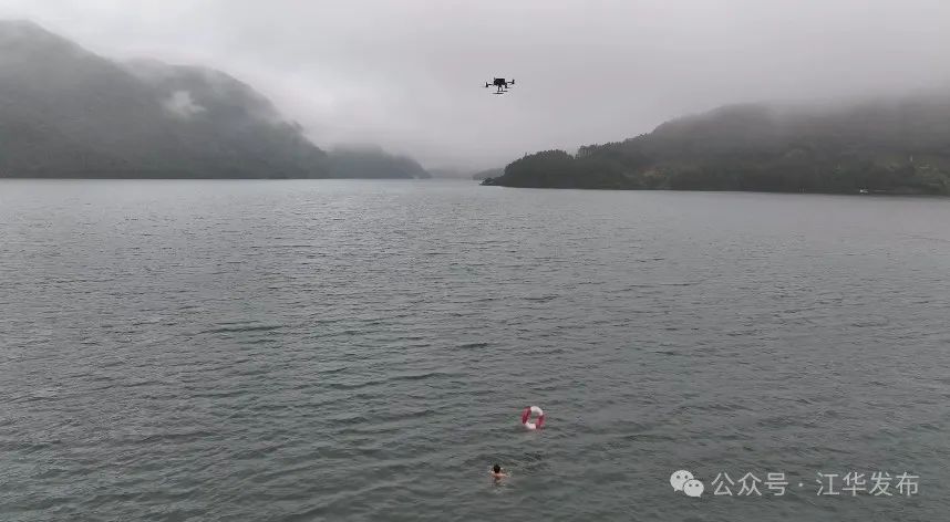 正在此时,一名群众不慎落水,落水位置距离岸边较远、有激流漩涡、情况复杂,救援人员无法及时到达。情况十万火急,民兵分队先派出无人机搜查人员落水位置,根据侦察情况再使用无人机投放救生圈,稳定“落水者”情绪,最后操作体积小、重量轻的“水上救援机器人”,快速前往营救。最终,水上救援机器人承载着落水者顺利到达安全区域,实现了对落水者的精准施救。