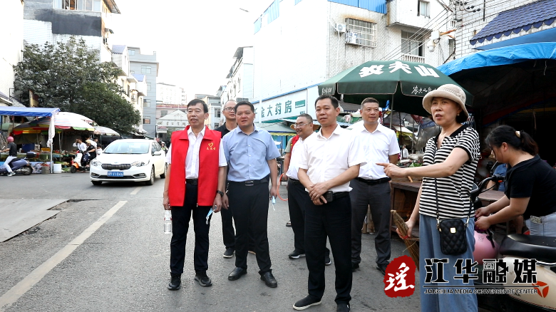 9月30日,江华县委常委、县委办主任万汝青带队到江华大市场调研文明城市创建和登革热防治工作。