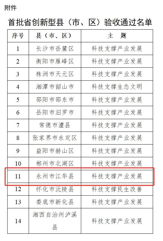 日前,省科技厅发文公布了首批湖南省创新型县(市、区)建设名单,江华以“科技支撑产业发展”为主题成功申报,成为永州市唯一一个创新型县(市、区)建设城市。江华以科技创新为笔,绘制出一幅幅壮丽的产业发展画卷。经过三年的建设,全县区域创新驱动发展能力显著提升,在创新型县培育过程中,江华瑶族自治县积极探索并形成了“规模工业进园区、小微企业进乡村、农业产业进基地、旅游产业进全域”的产业发展模式。