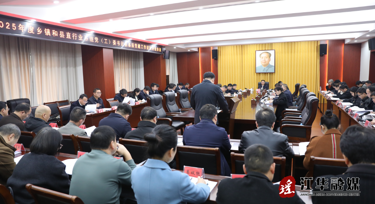 3月2日,江华召开2025年度乡镇和县直行业系统党(工)委书记抓基层党建工作述职评议会议。江华县委书记袁章中主持会议,该县县领导唐亚辉、何开银、唐元甲、蒋星辉、刘志栋、左华生、彭冠雄、冯云参加,市委组织部干部信息科科长张雄到会指导。