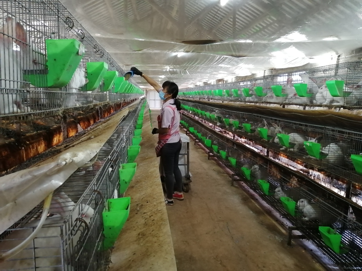 “原来养猪,现在养兔,我两口子在这上班已有好几年。这兔场温度保持在25度左右,风不吹雨不淋,干活也不累,比起原来在家做农活舒服多了。每月两人工资还有七千多元,离家又近,还可以时不时照顾家里,真的很不错!”胡四女是沱江镇大干村脱贫户,丈夫早几年在建筑工地干活,不慎从楼上摔下昏迷了半个月,从此再也不能从事重体力劳动,家中还有三个小孩和老人需要照顾,在这里上班,她感到很满意。