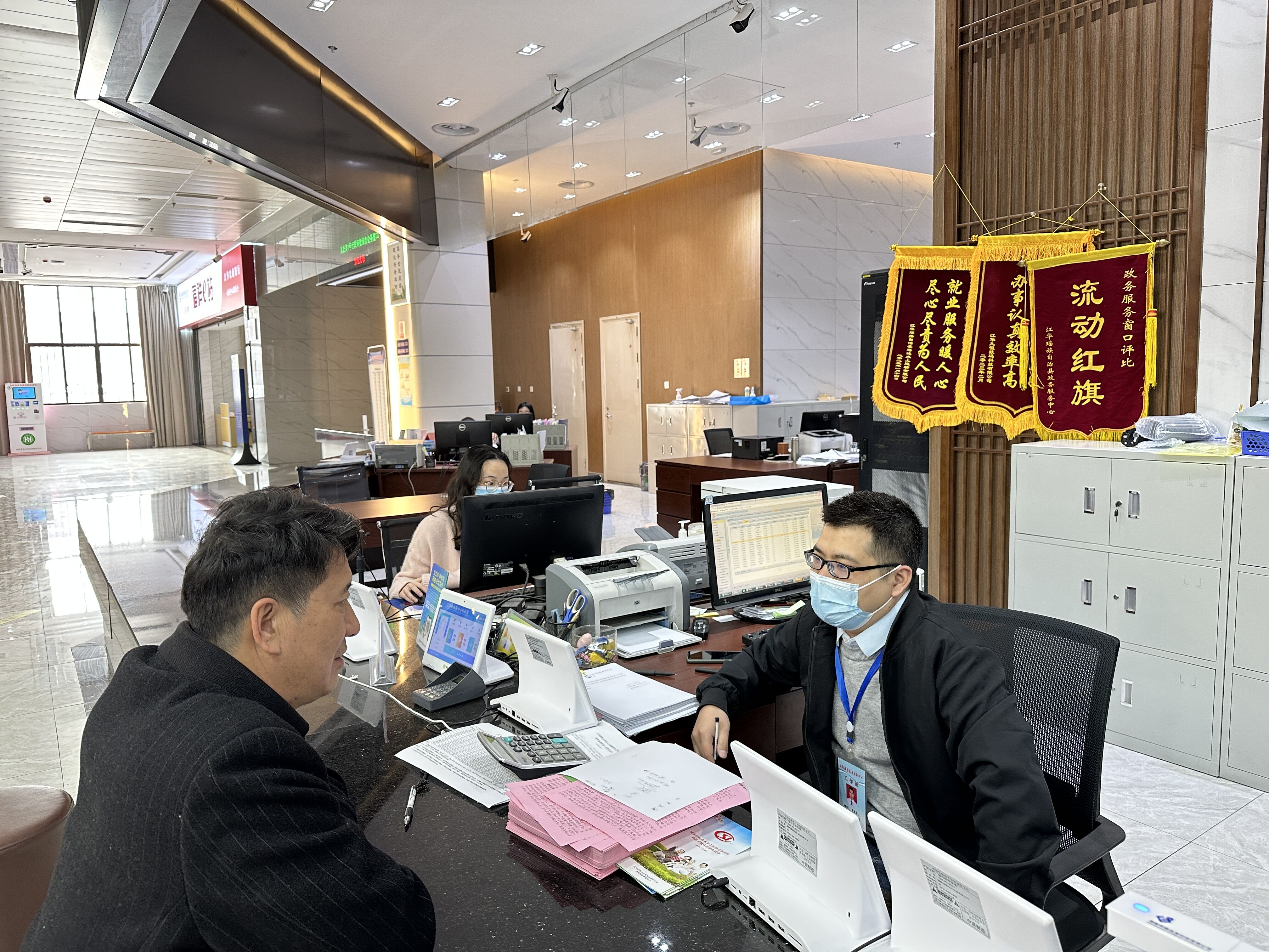近日,县人社局局长刘福龙、副局长李仁贵一行人来到县政务服务中心人社窗口,开展“走流程、解难题、优服务”活动,以群众视角现场体验养老保险相关业务办理流程,并与现场办事群众交流,针对群众提出的城乡养老保险提档补缴问题,详细地宣传解释了当前政策和办理流程。