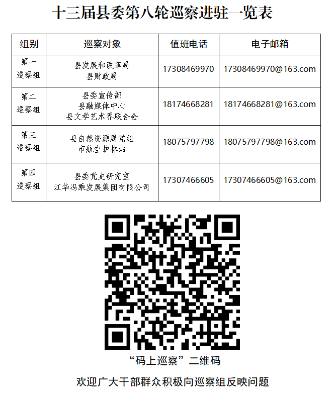 8月26日,十三届县委第八轮巡察4个巡察组完成对县委宣传部、县财政局、江华冯乘发展集团有限公司等8个县直单位和1个县管企业的进驻工作,十三届县委第八轮巡察全面开展。