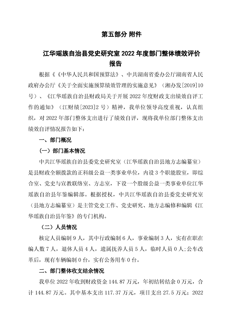 江华瑶族自治县党史研究室2022年度部门决算公开