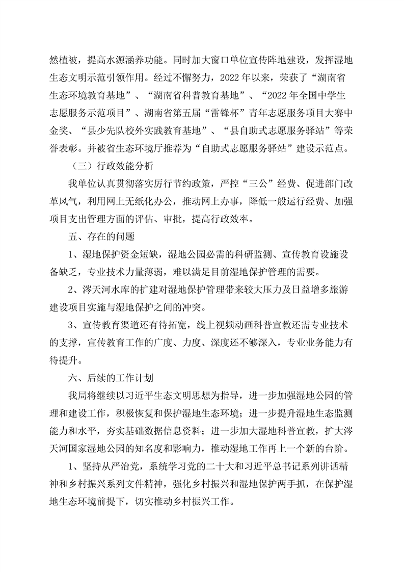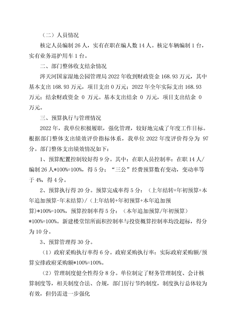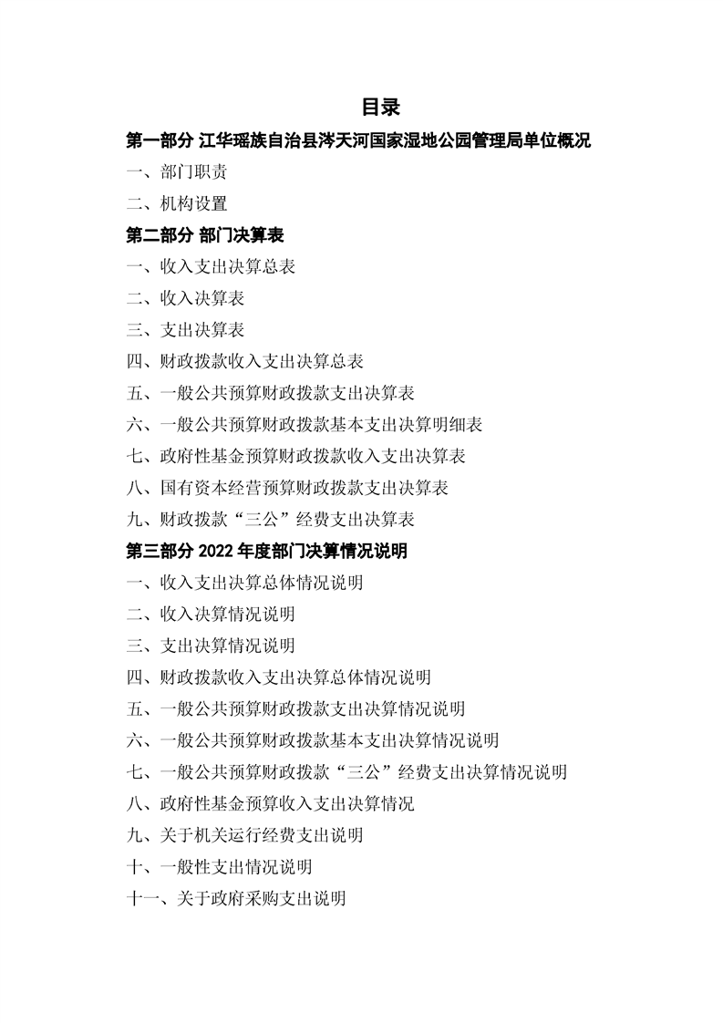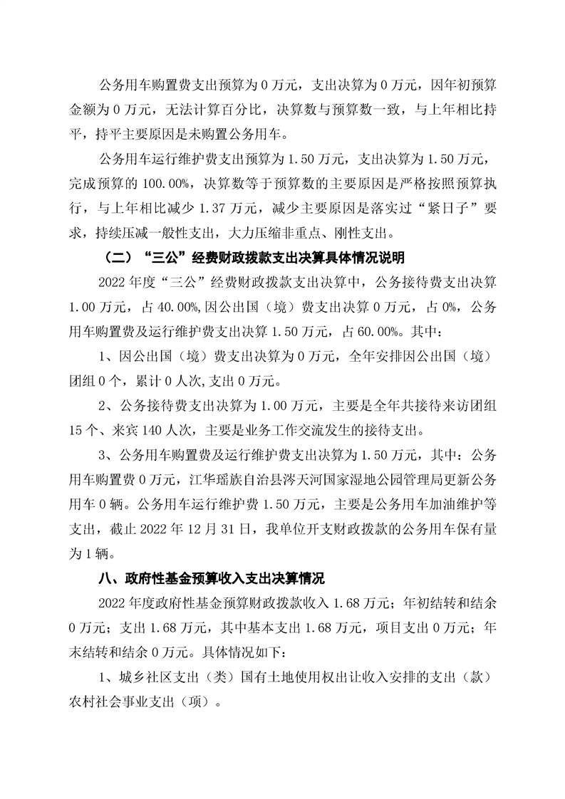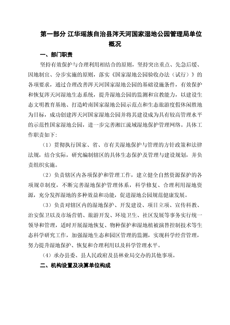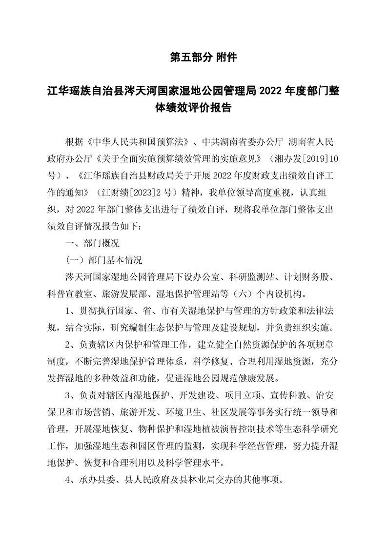 江华瑶族自治县涔天河国家湿地公园管理局2022年度部门决算