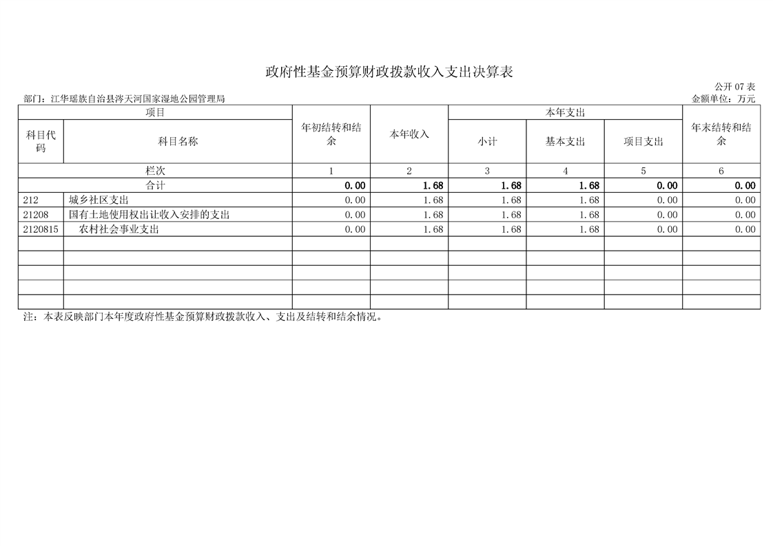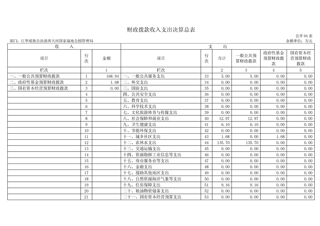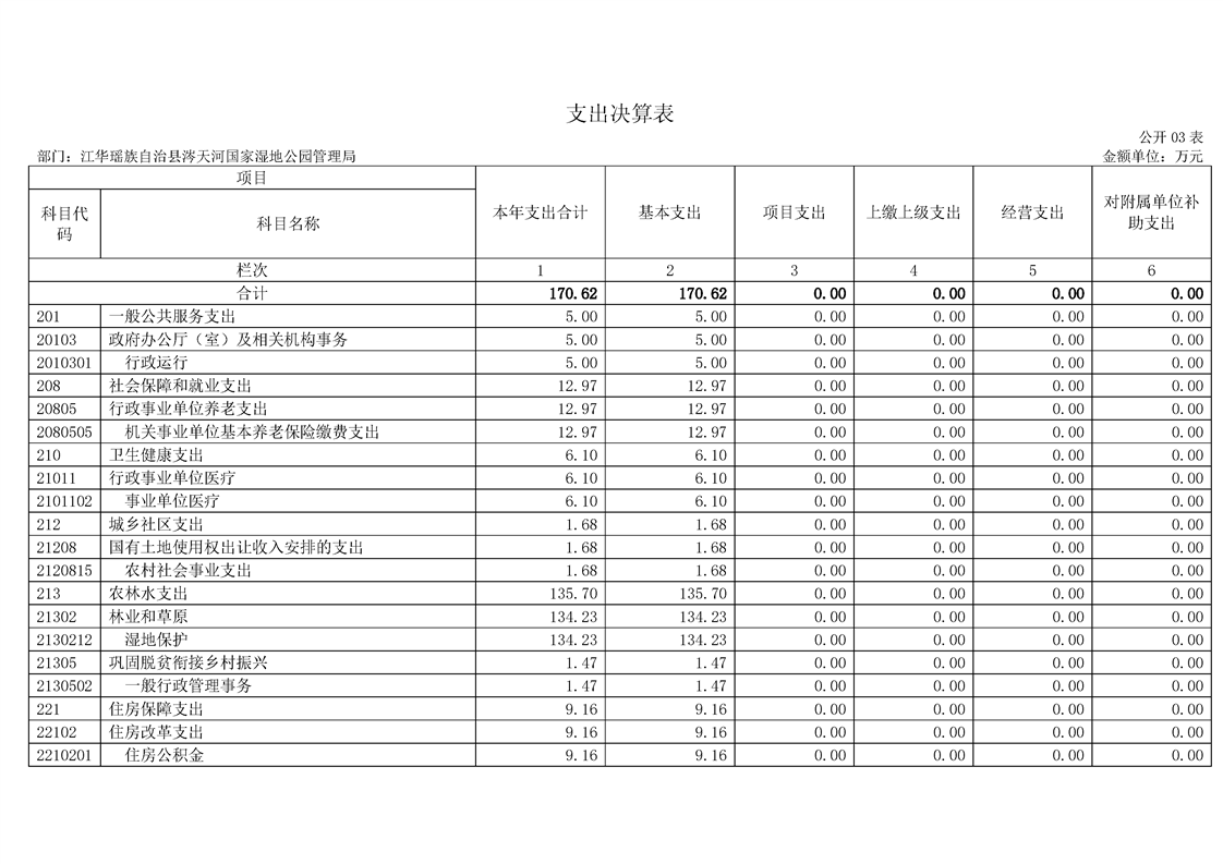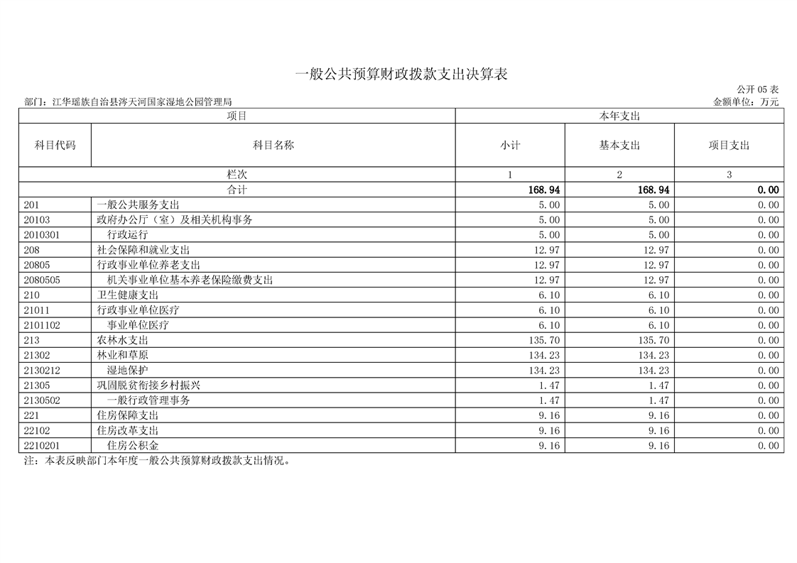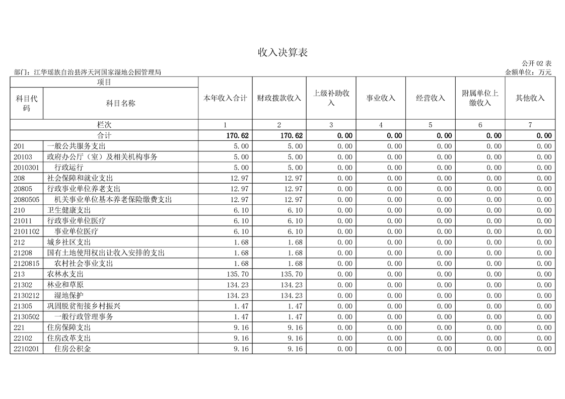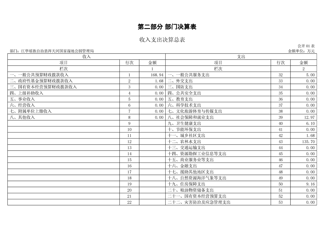 江华瑶族自治县涔天河国家湿地公园管理局2022年度部门决算