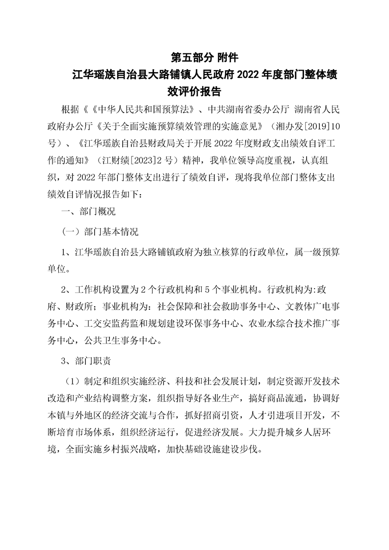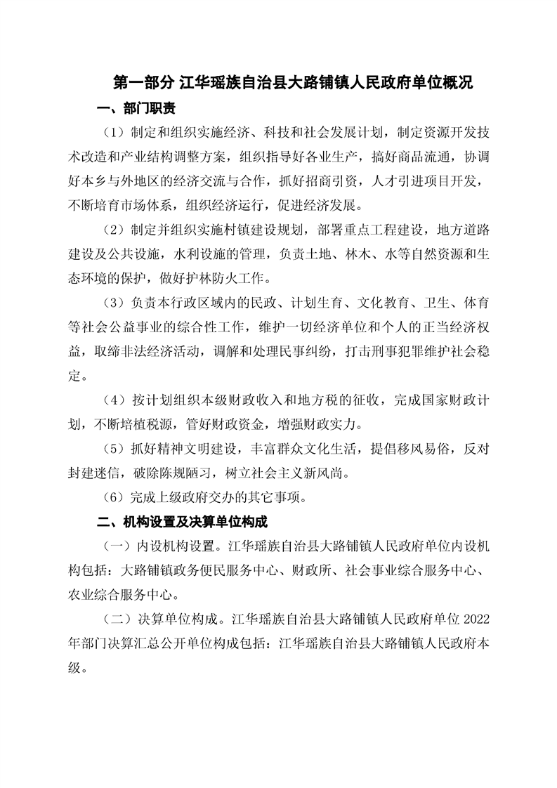 江华瑶族自治县大路铺镇人民政府2022年度部门决算