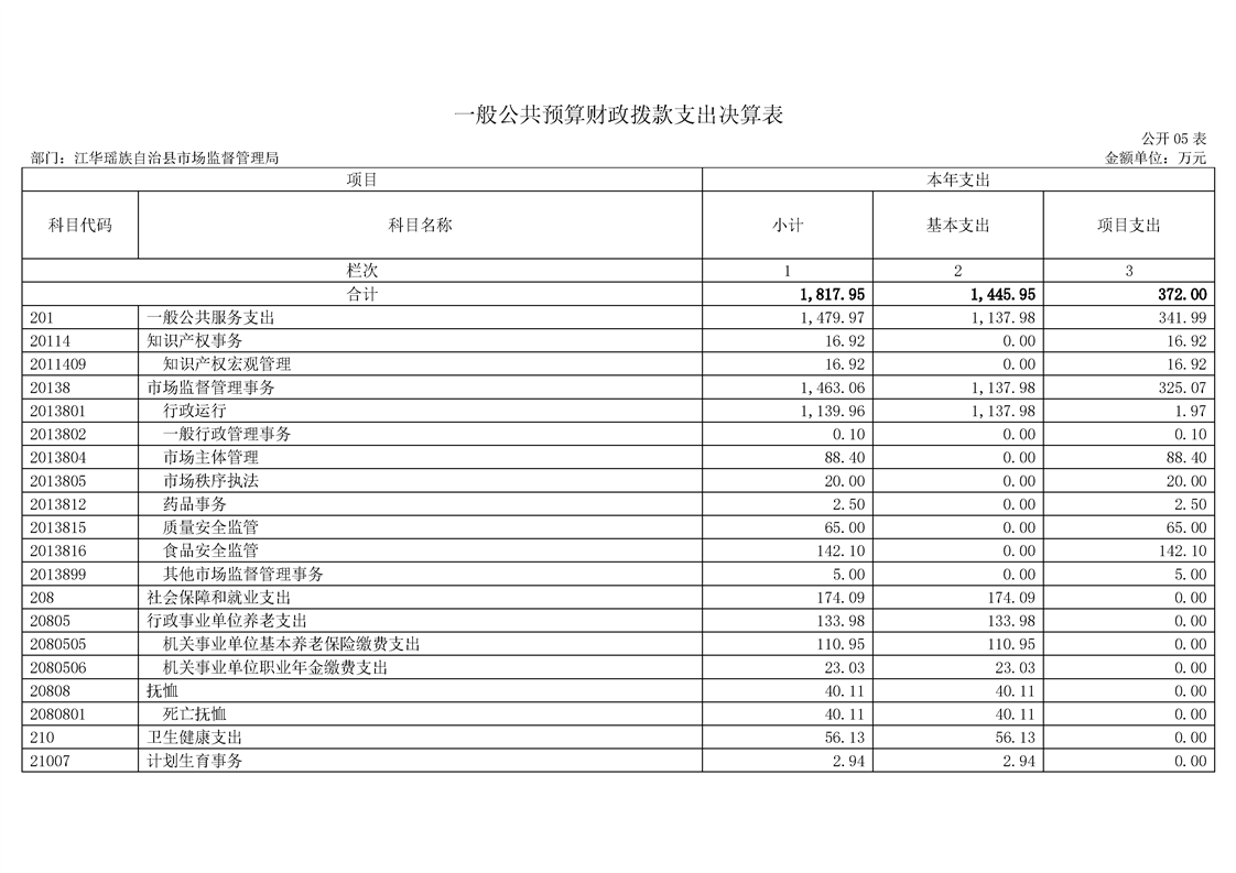 江华瑶族自治县市场监督管理局2022年度部门决算