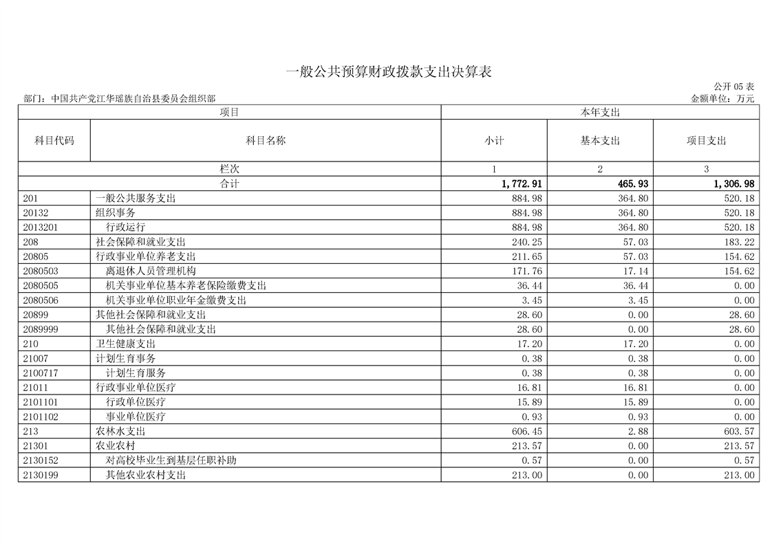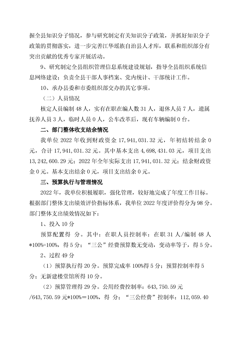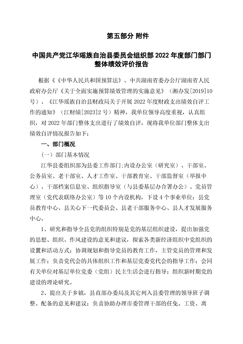 中国共产党江华瑶族自治县委员会组织部2022年度部门决算