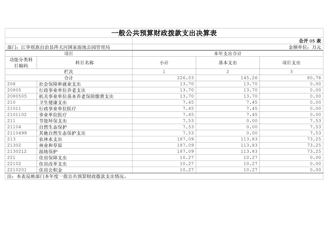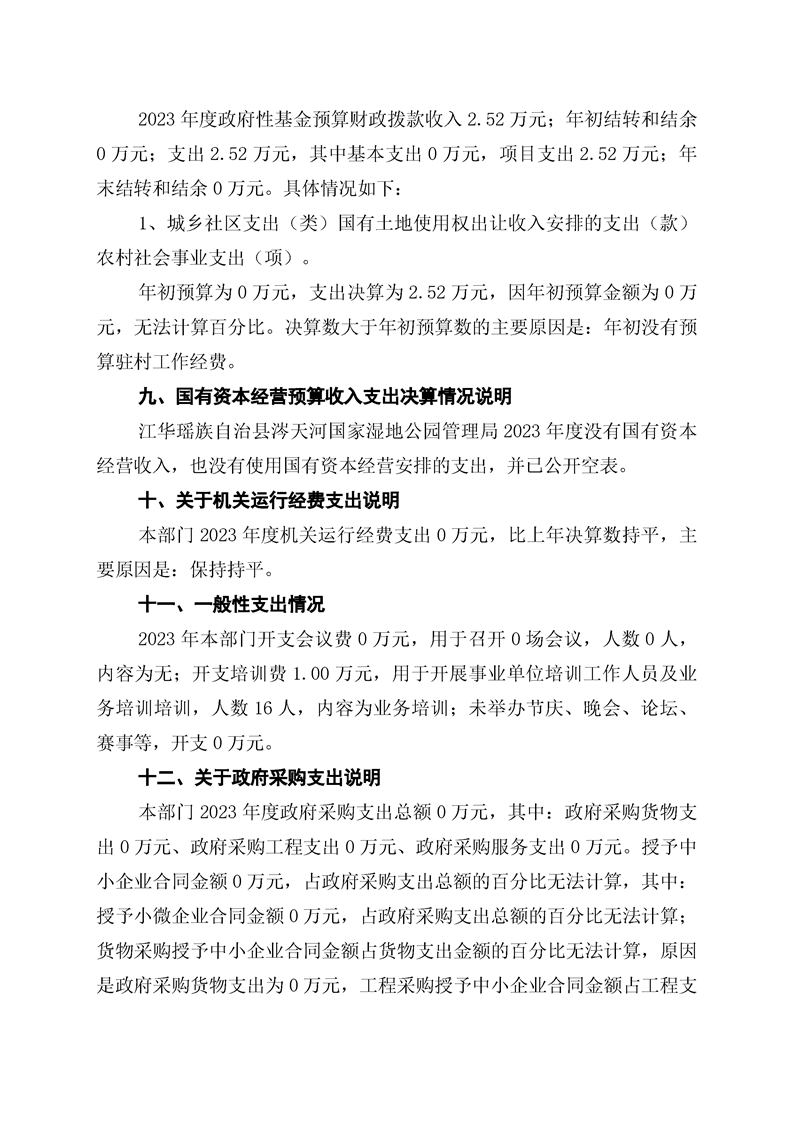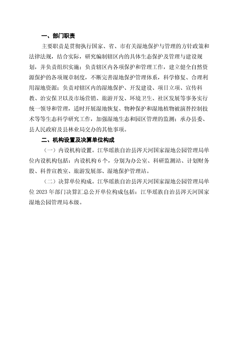 2023年度江华瑶族自治县涔天河国家湿地公园管理局部门决算