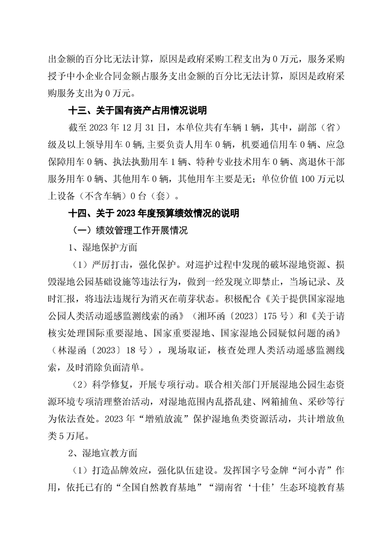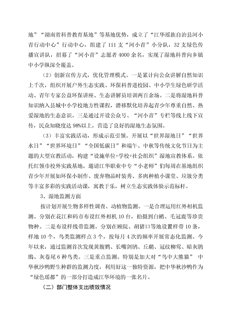 2023年度江华瑶族自治县涔天河国家湿地公园管理局部门整体支出绩效评价报告