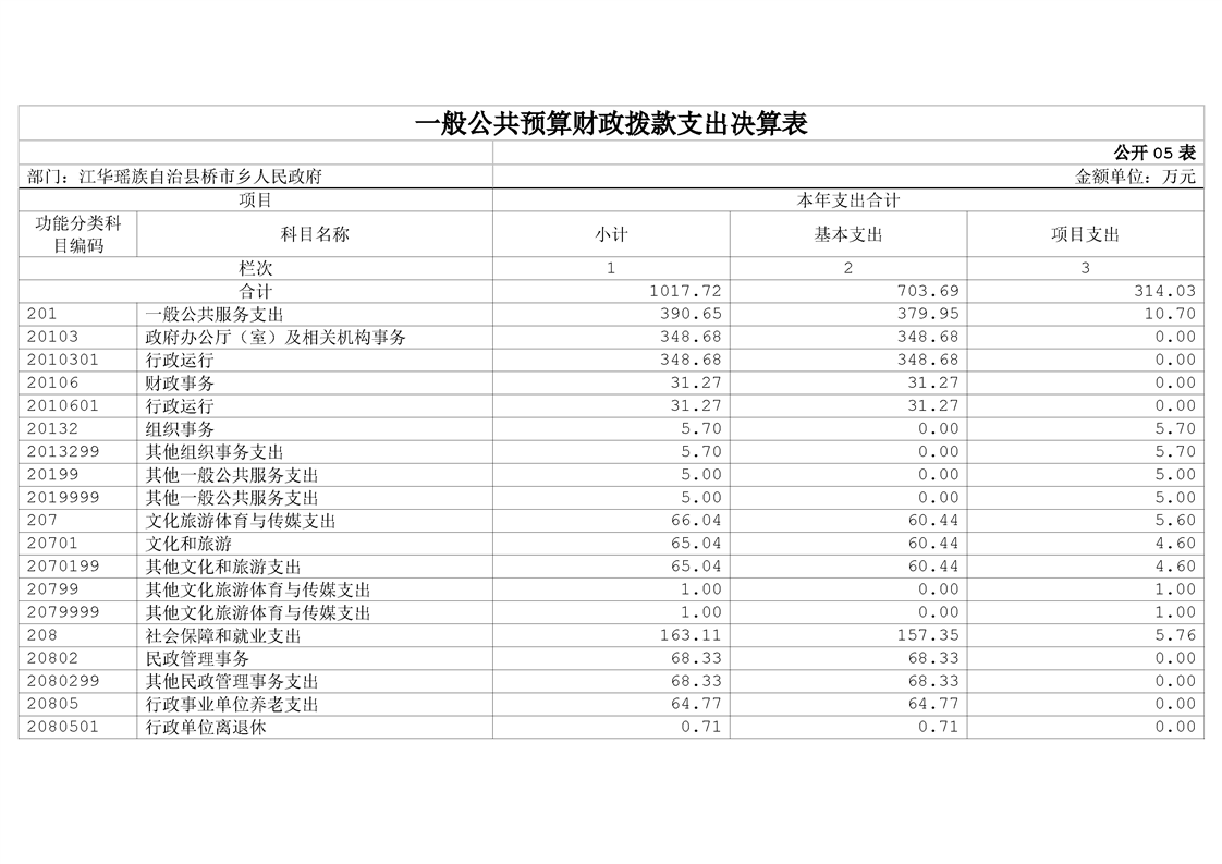 2023年度江华瑶族自治县桥市乡人民政府部门决算