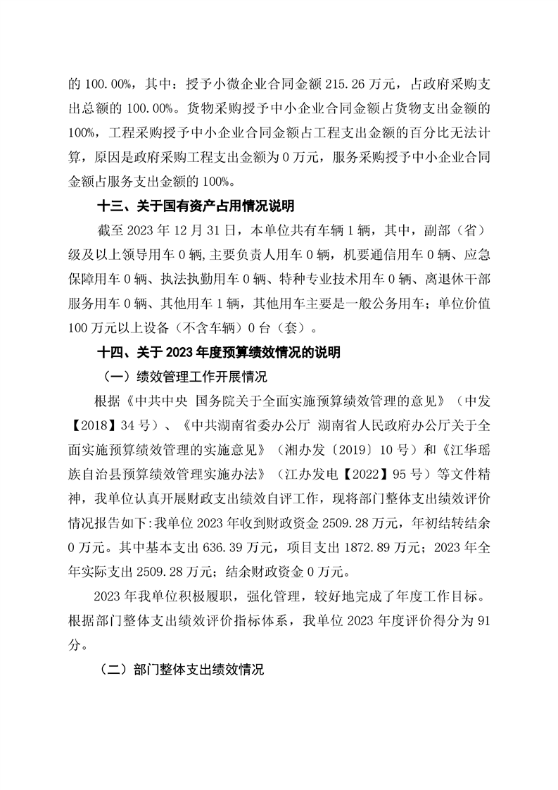 2023年度江华瑶族自治县发展和改革局部门整体支出绩效评价报告