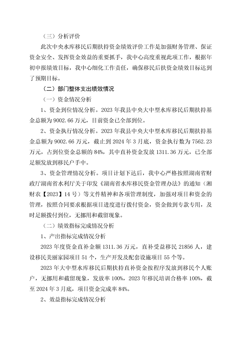 2023年度江华瑶族自治县水利和库区移民事务中心部门整体支出绩效评价报告