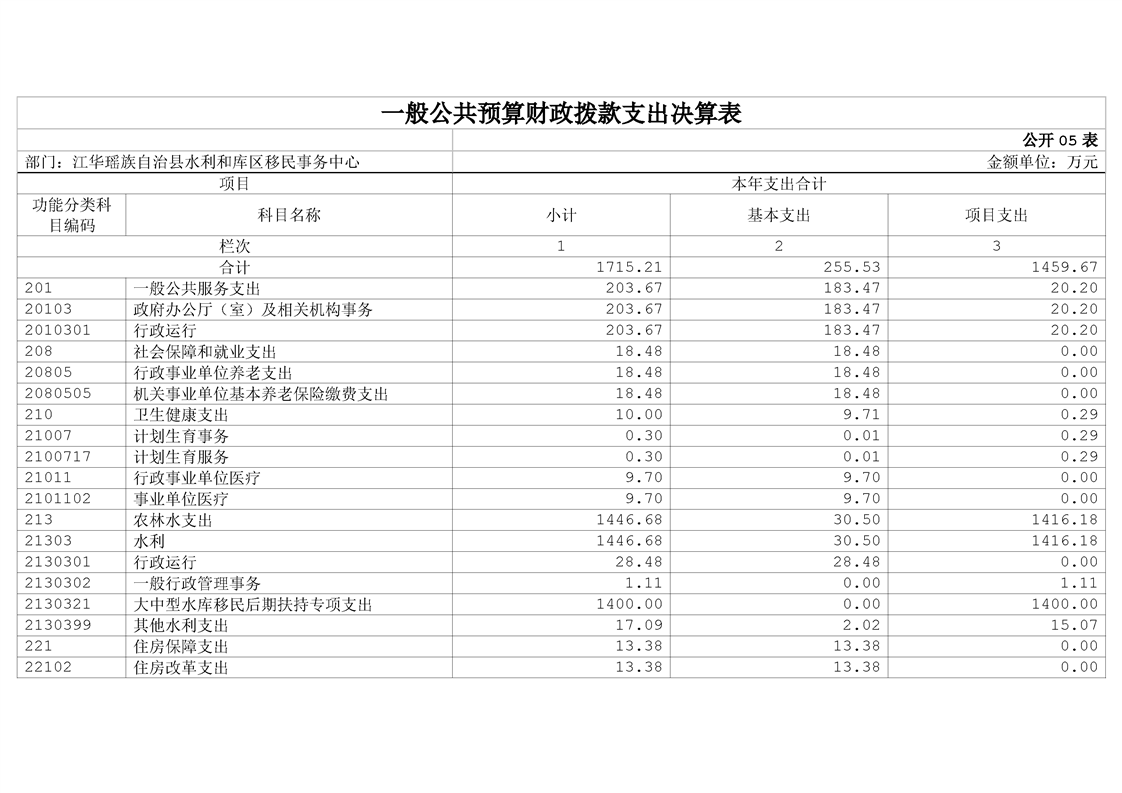 2023年度江华瑶族自治县水利和库区移民事务中心部门决算