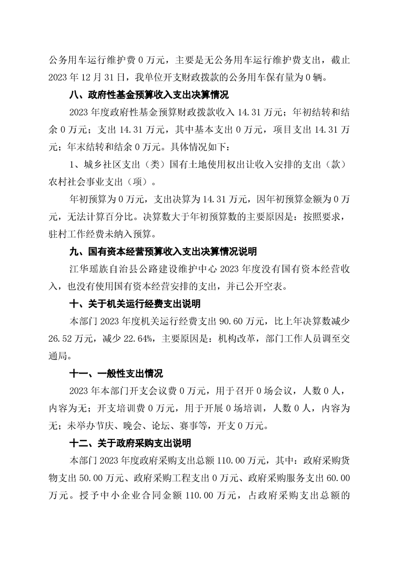 2023年度江华瑶族自治县公路建设维护中心部门决算