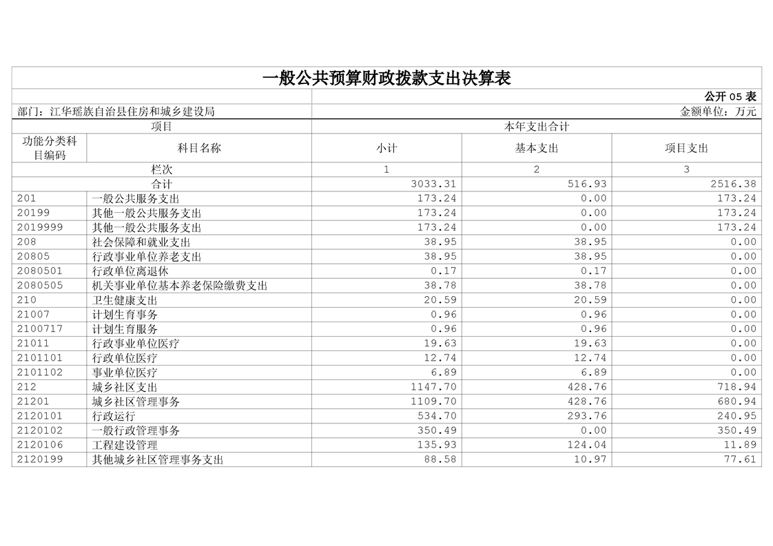 2023年度江华瑶族自治县住房和城乡建设局部门决算