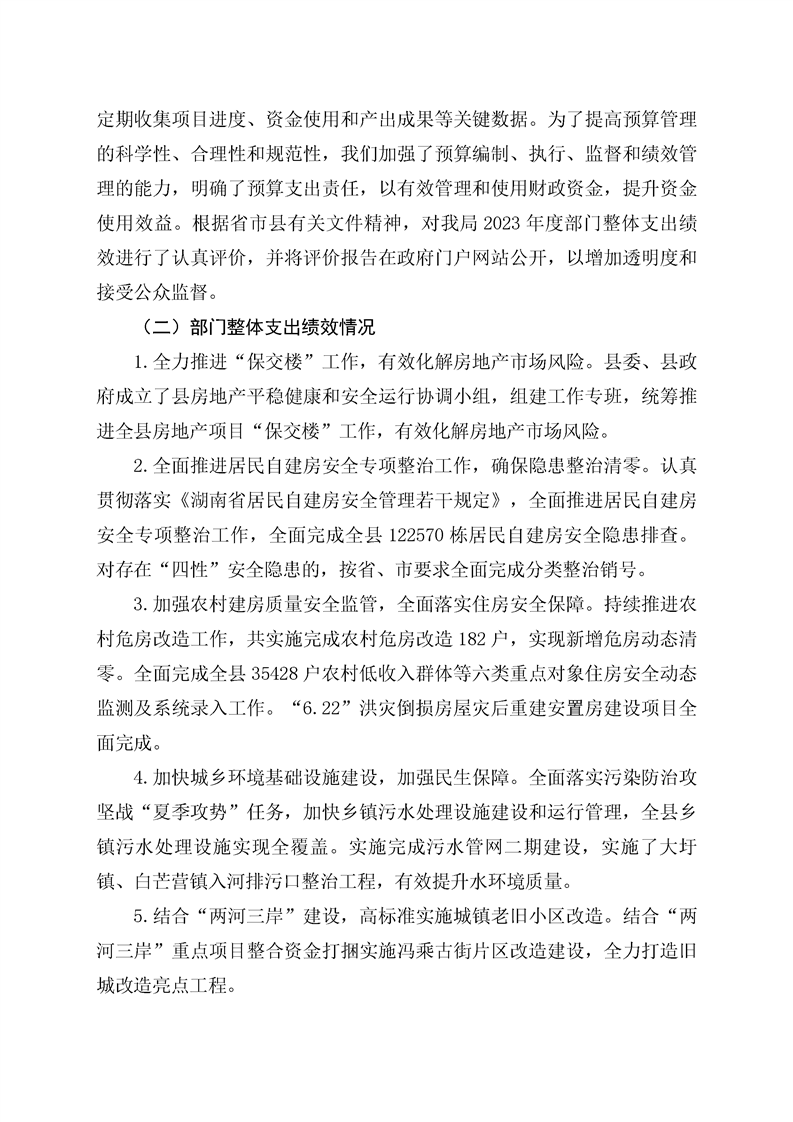 2023年度江华瑶族自治县住房和城乡建设局部门整体支出绩效评价报告