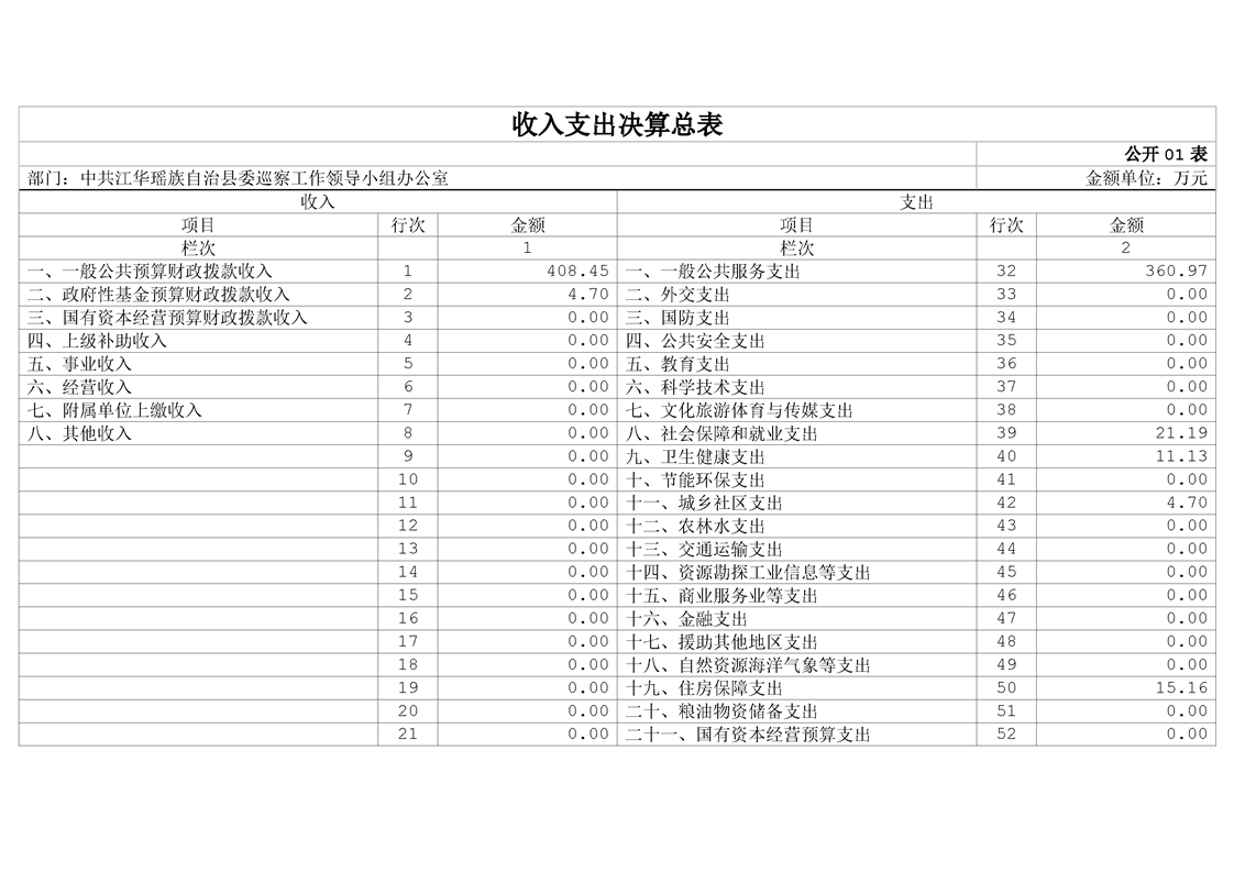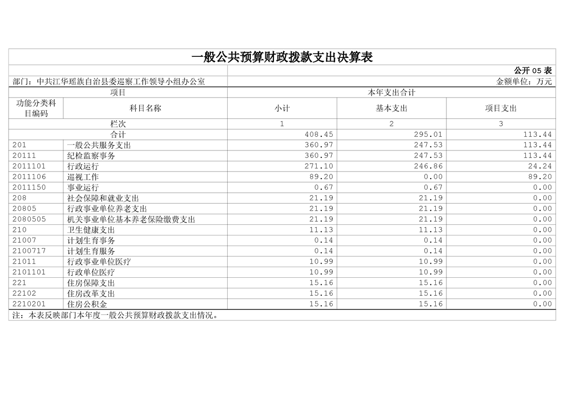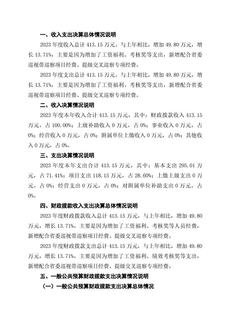 2023年度中共江华瑶族自治县委巡察工作领导小组办公室部门决算