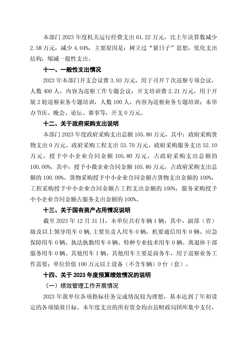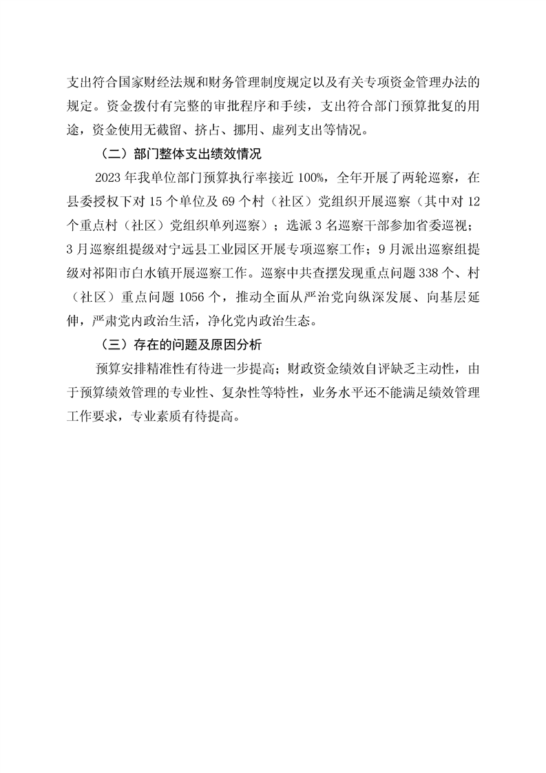 2023年度中共江华瑶族自治县委巡察工作领导小组办公室部门整体支出绩效评价报告