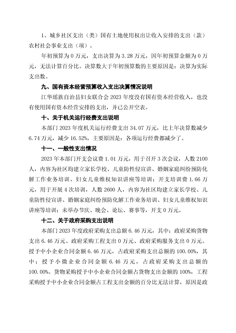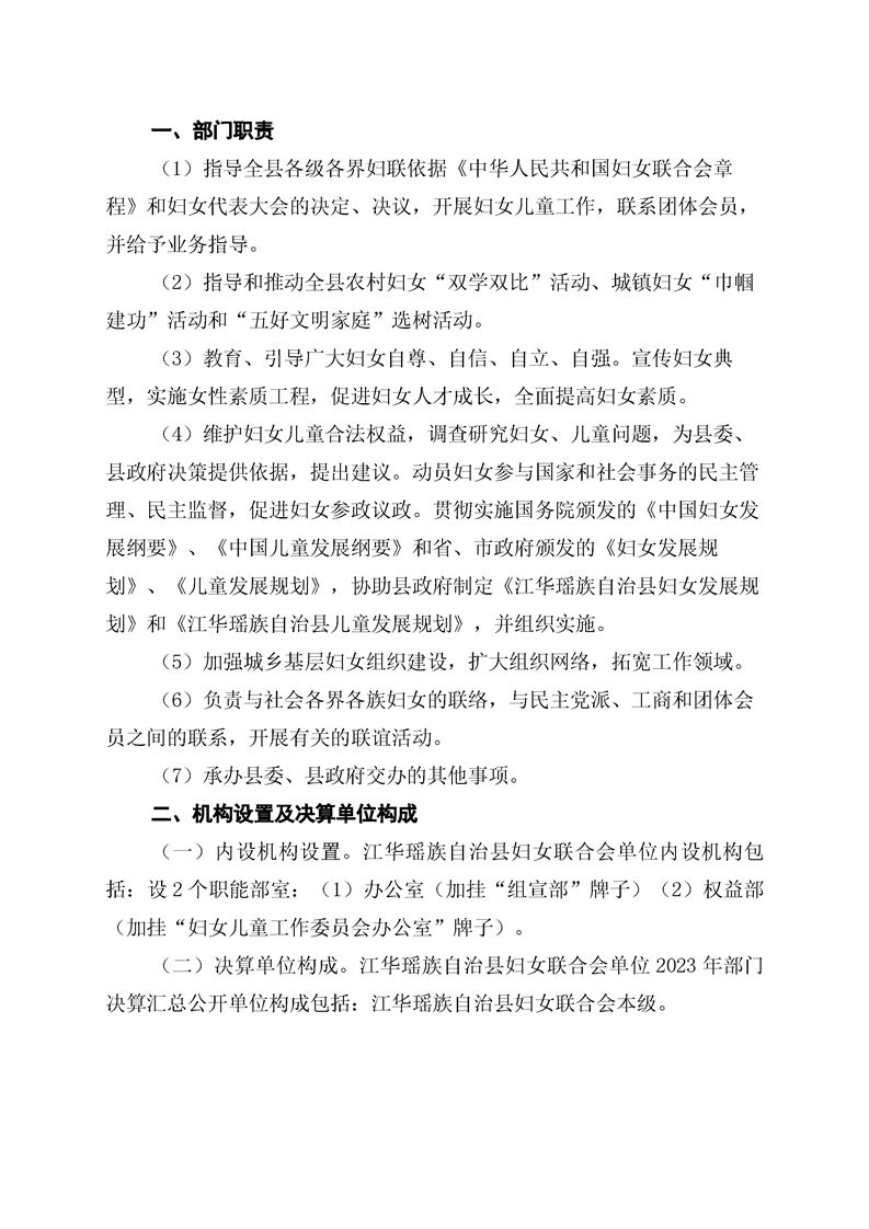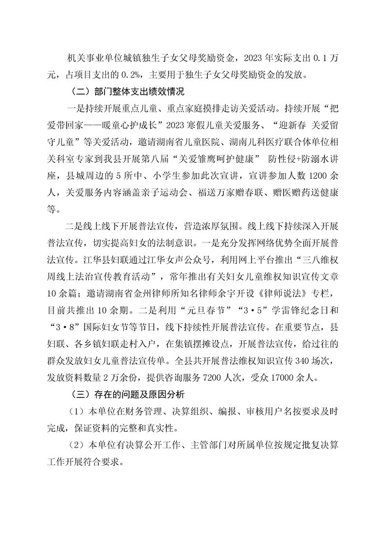 2023年度江华瑶族自治县妇女联合会部门整体支出绩效评价报告