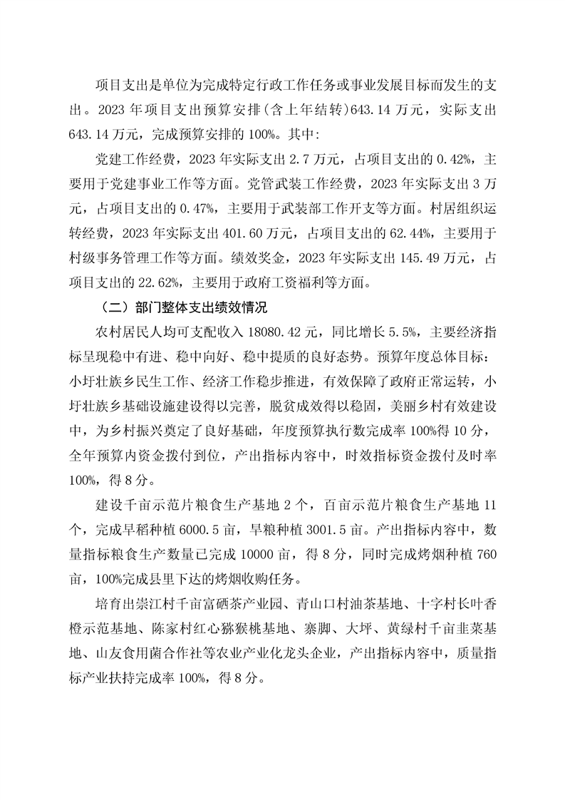 2023年度江华瑶族自治县小圩壮族乡人民政府部门整体支出绩效评价报告