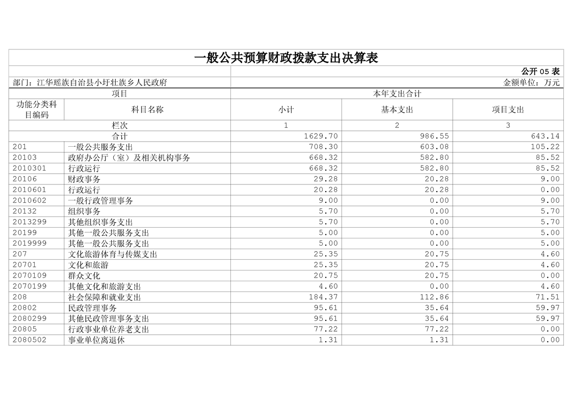 2023年度江华瑶族自治县小圩壮族乡人民政府部门决算