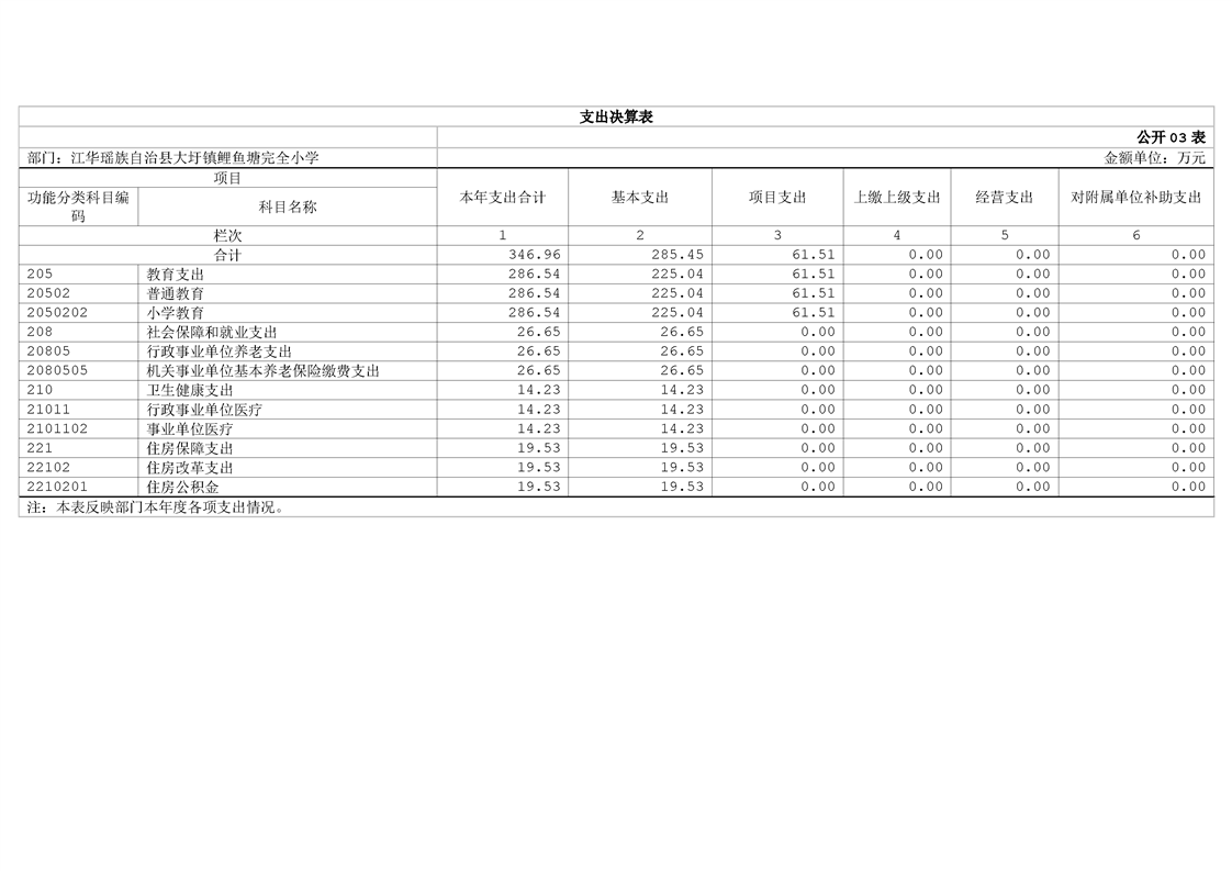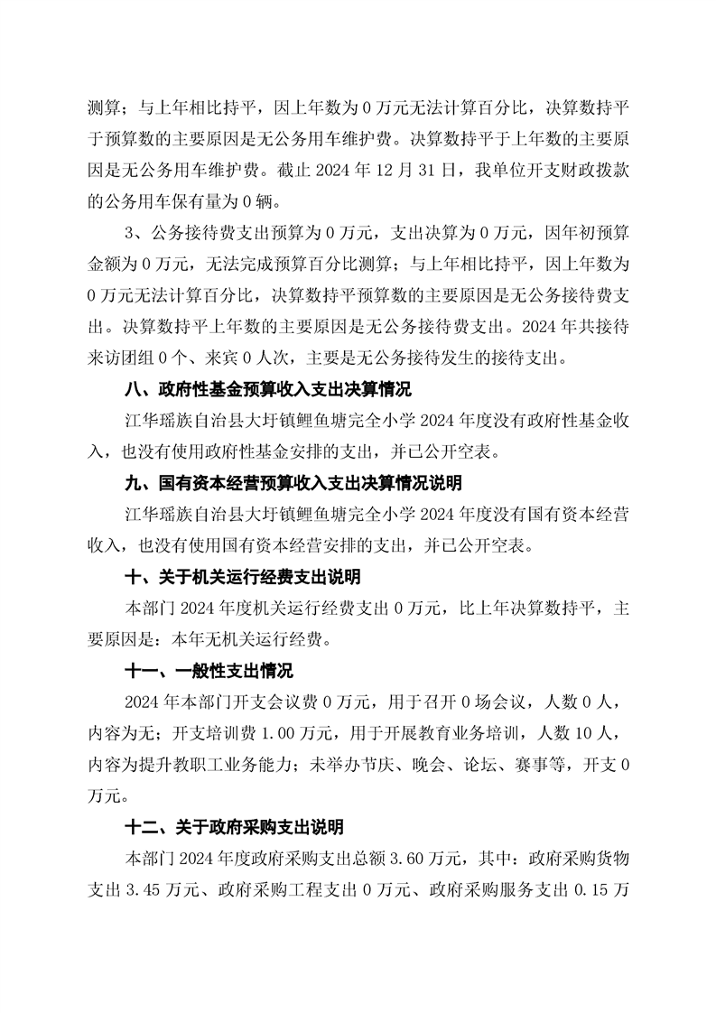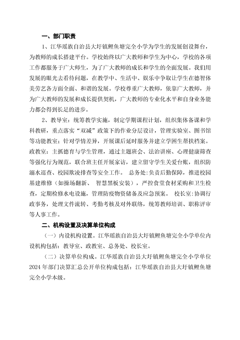 2024年度江华瑶族自治县大圩镇鲤鱼塘完全小学部门决算