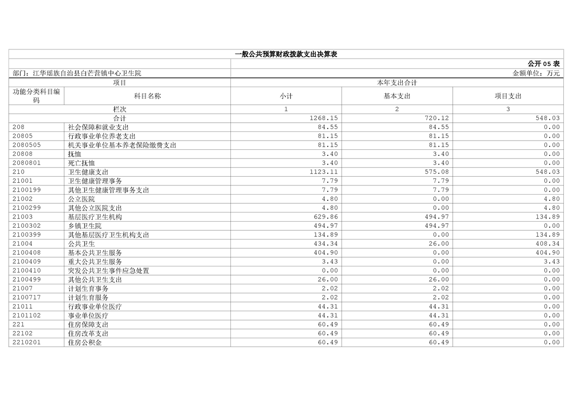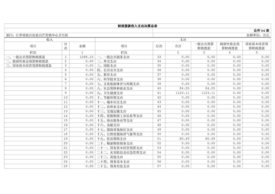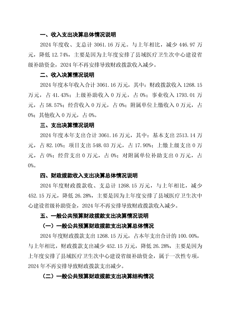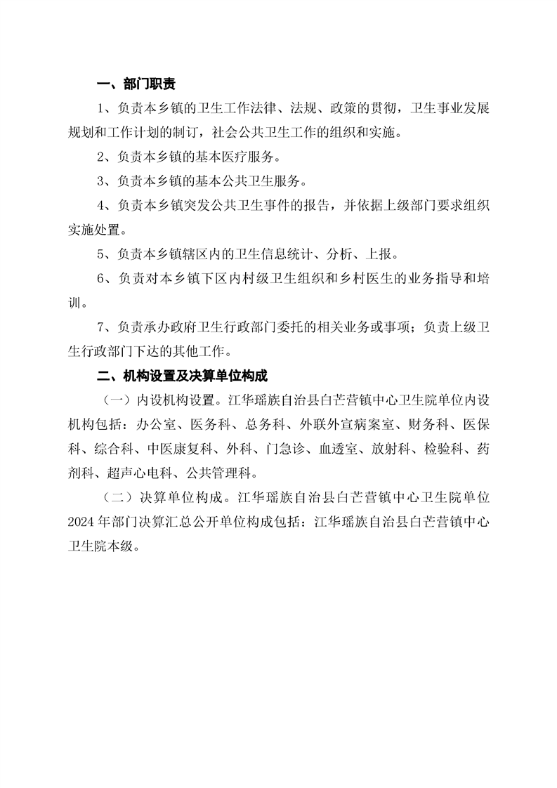 2024年度江华瑶族自治县白芒营中心卫生院部门决算